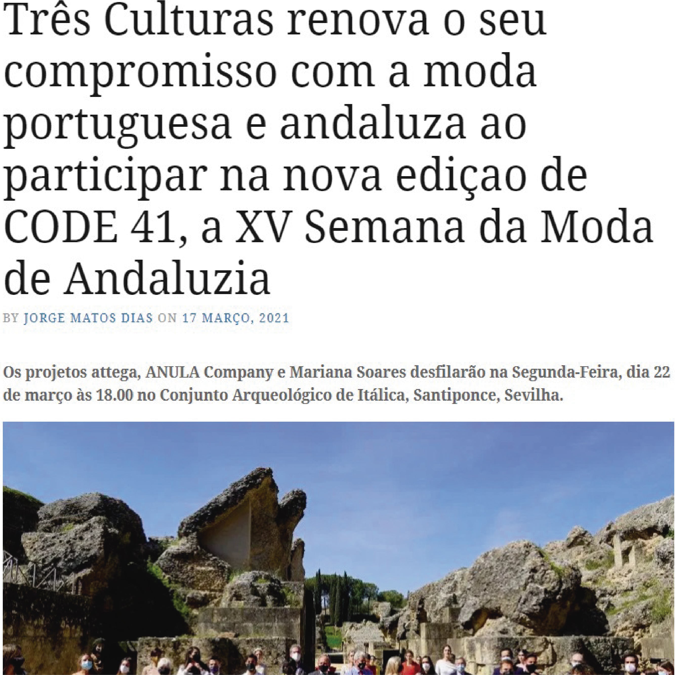 Num ano particularmente difícil para setores como o da moda, a Fundação Três Culturas promove mais um ano, a presença de Portugal junto a marcas andaluzas na XV Semana da Moda de Sevilha, CODE 41, graças ao projeto INTREPIDA plus, uma iniciativa de cooperação transfronteiriça entre Espanha e Portugal dedicada à internacionalização de empresas geridas por mulheres em ambos países."