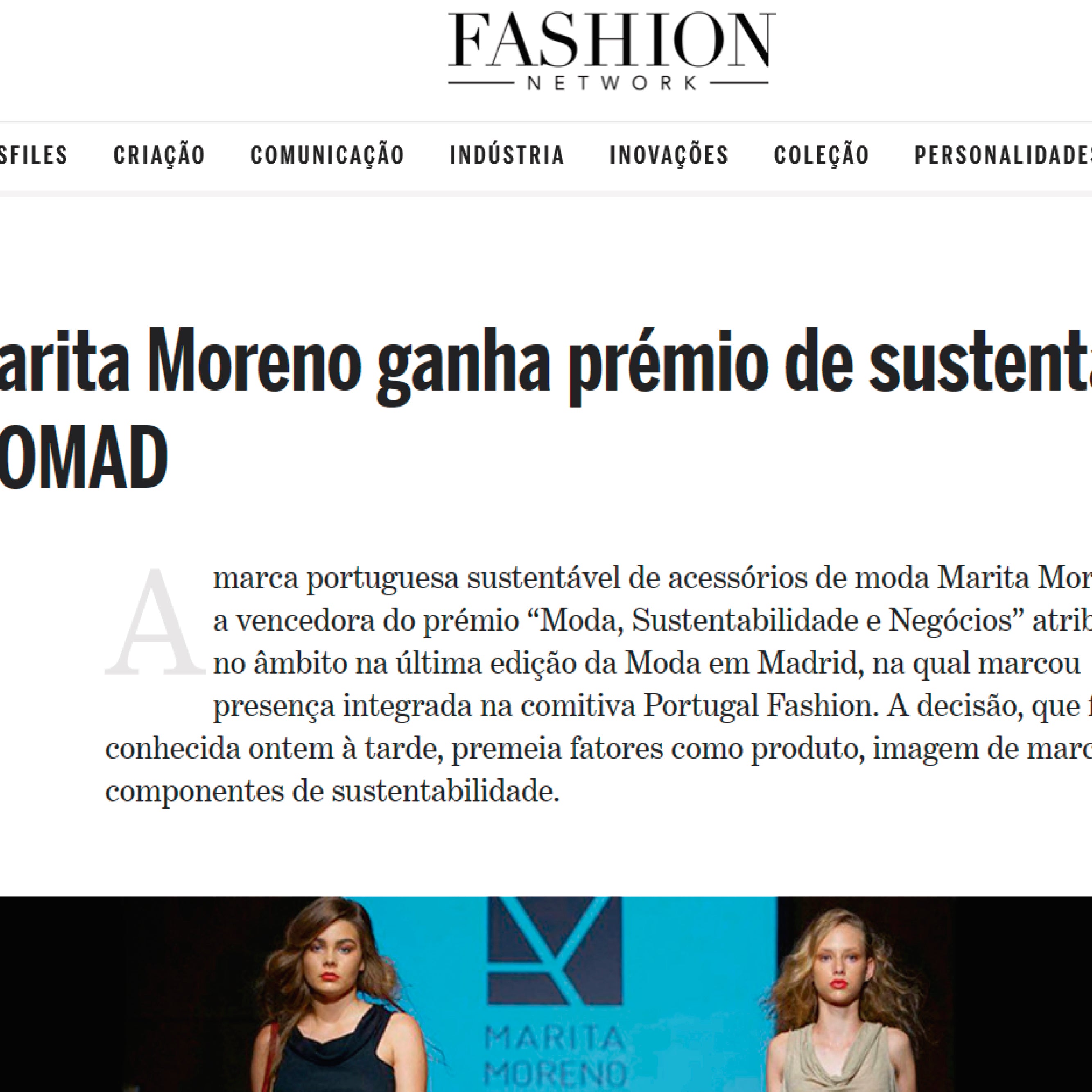 A marca portuguesa sustentável de acessórios de moda Marita Moreno é a vencedora do prémio “Moda, Sustentabilidade e Negócios” que é atribuído é atribuído no âmbito da na última edição da Moda em Madrid, na qual marcou presença integrada na comitiva Portugal Fashion. A decisão, que foi conhecida ontem à tarde, premeia factores como produto, imagem de marca e componentes de sustentabilidade.