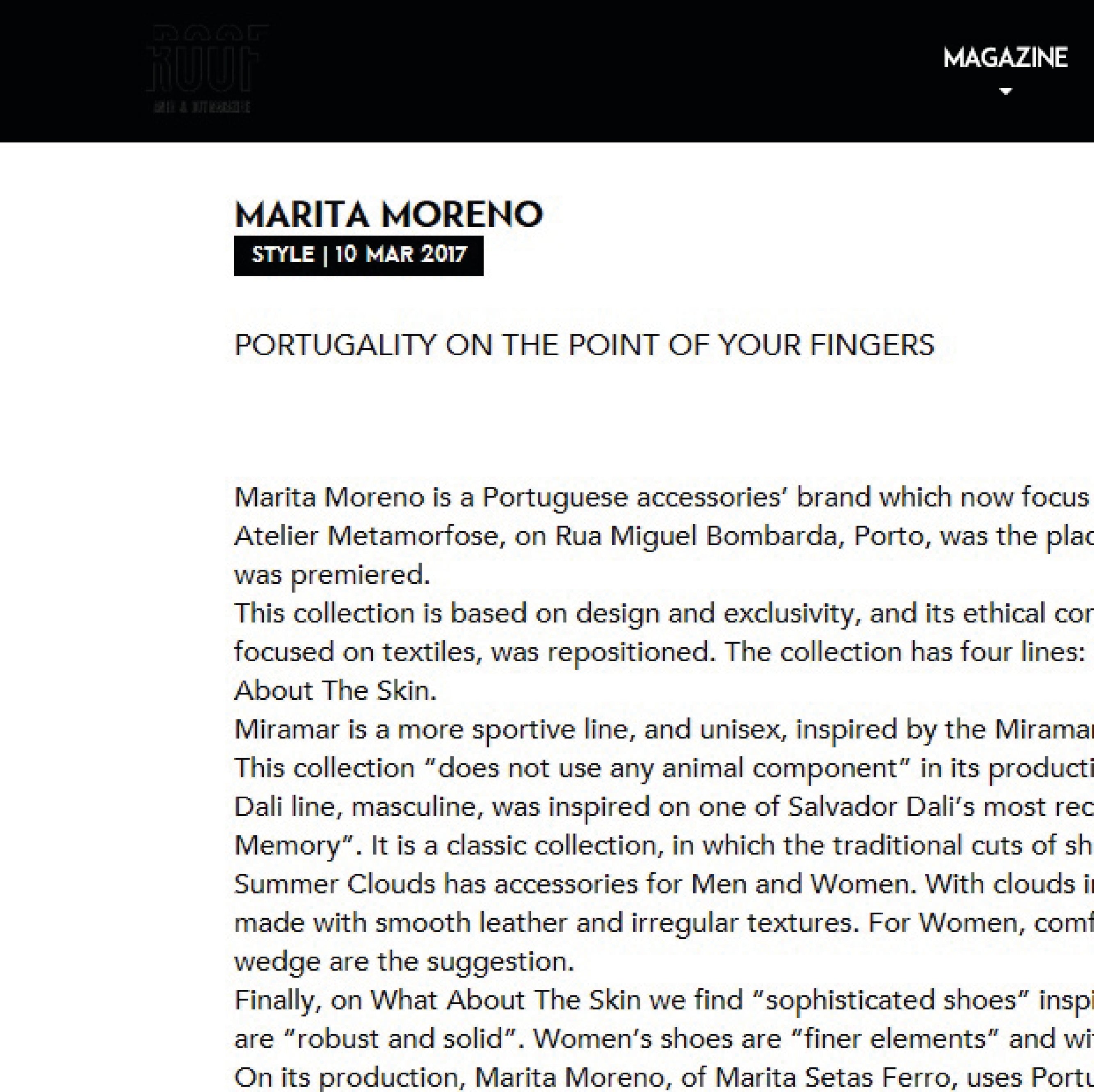 The brand appeared in 2008, but now Marita is more focused on promoting it, although she does not resist counting when she will have other sculpture exhibitions or when she will give training in the area of design, another of her activities. "Now I'm going to the Azores," confided the designer, who was also a teacher at Escola Árvore in Porto. Before, Marita Moreno was more focused on textiles, but now redirected to footwear and accessories like bags and shoes.