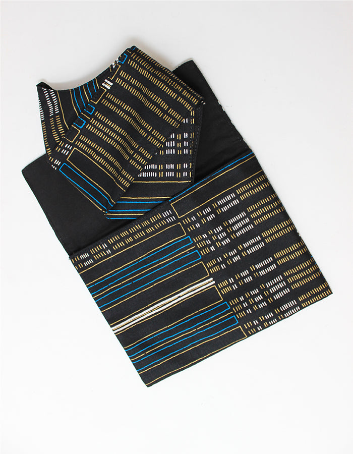 These Adornment/Mask-cover consists of two layers of fabric: the lining is 100% cotton and the exterior varies according to the reused materials and according to aesthetic reasons - it may be cotton, silk, linen, modal, cupro, viscose, etc.