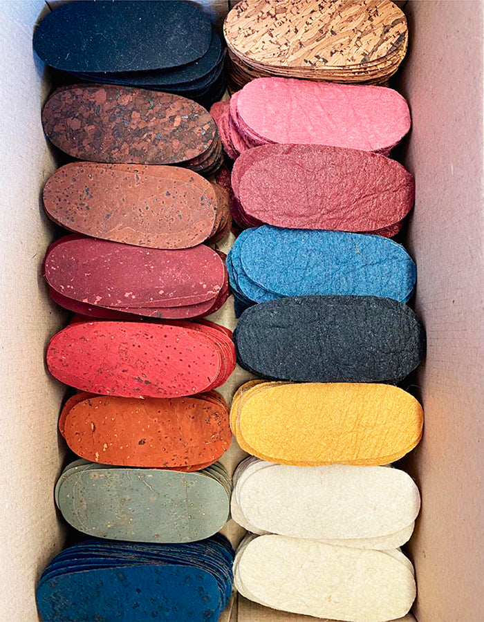 - Cortiça ou Malai ou Pinatex (Upcycled)