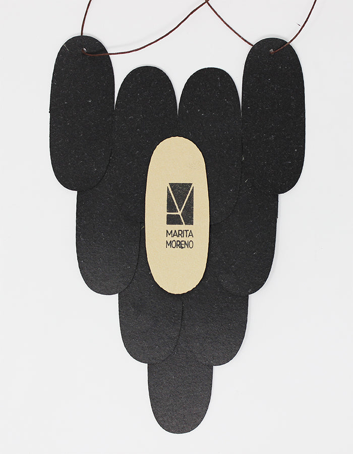 Demos uma nova vida ao material que sobra da produção das nossas bolsas Shell (Piñatex®, Malai, Cork) e criamos os Colares Upcycling Marita Moreno. Estão disponíveis em diferentes cores e combinações de materiais, e foram feito à mão pela nossa Directora Criativa Marita Setas Ferro.