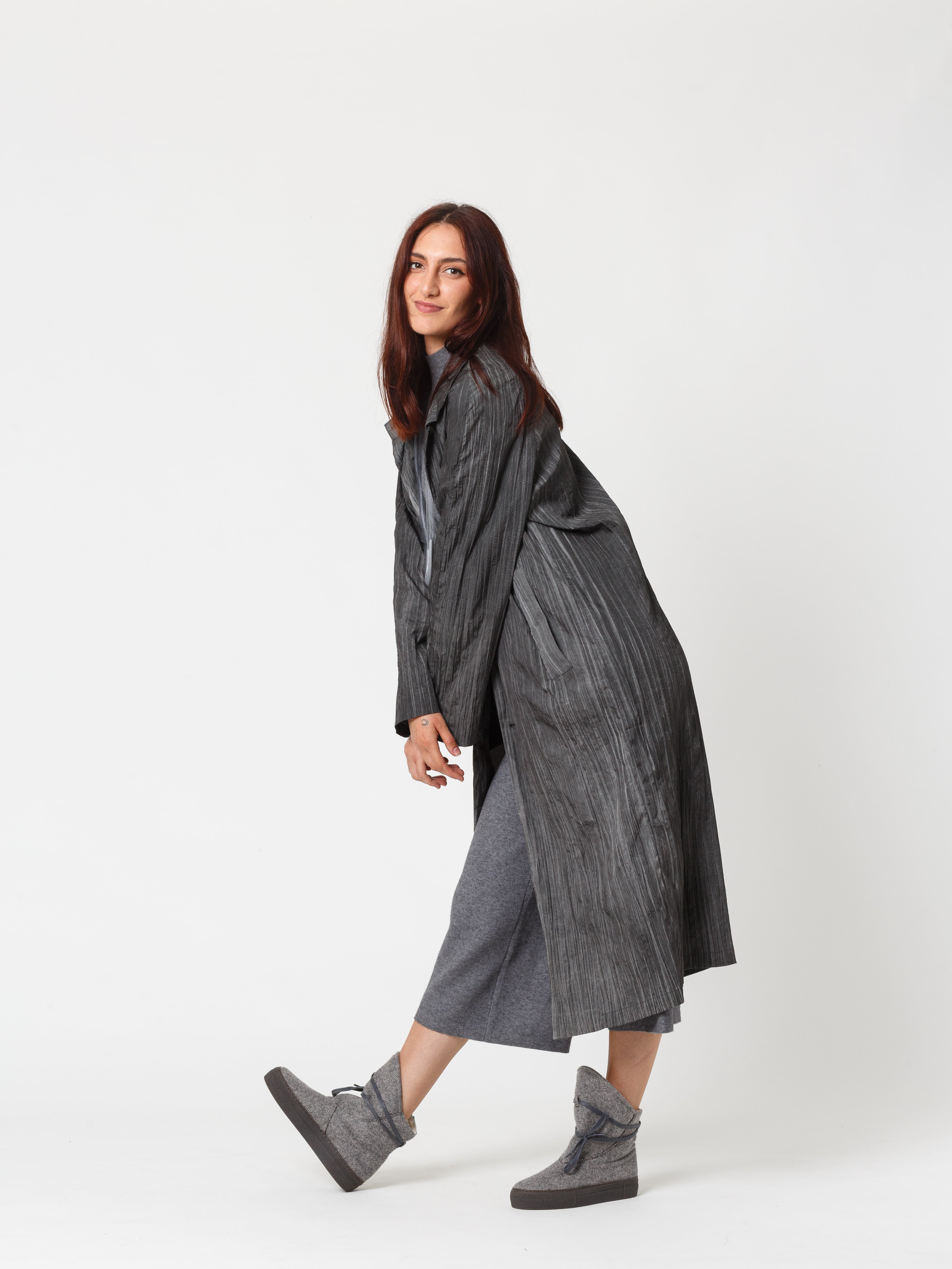 As Botas Michone em Burel Cinza e Pêlo são feitas em Burel  - é um tecido 100% lã produzido por uma empresa de origem familiar, situada em Manteigas, Serra da Estrela. A autenticidade do Burel resulta de uma sequência de operações específicas no processo de fabricação. A lã, depois de tosquiada, lavada, fiada, tecida no órgão e no tear, é pisada numa máquina denominada “pisão”, que bate e escalda a lã, transformando o tecido em burel, tornando-o mais apertado, mais resistente e à prova d'água.