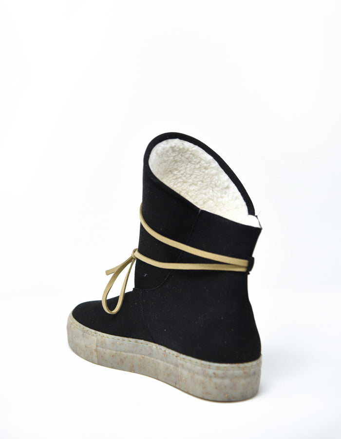 A microfibra utilizada no MICHONE FUR CORK BLACK é de alta qualidade, é resistente e também um material vegano com eco-certificação, este material é resultado de práticas ecológicas: Os excessos de produção são recolhidos de marcas parceiras e reciclados em novos materiais.
