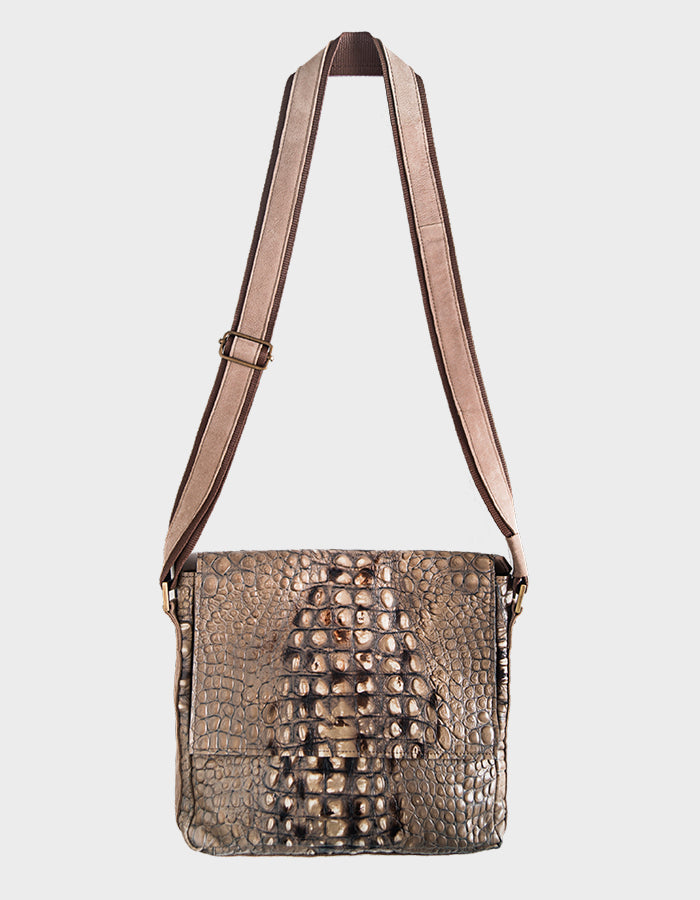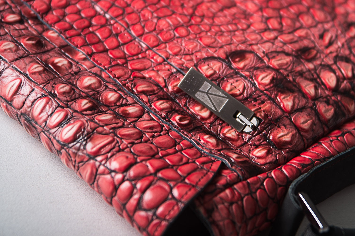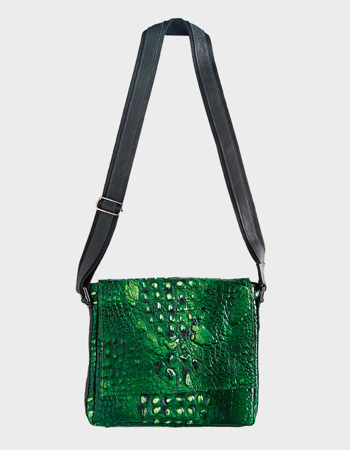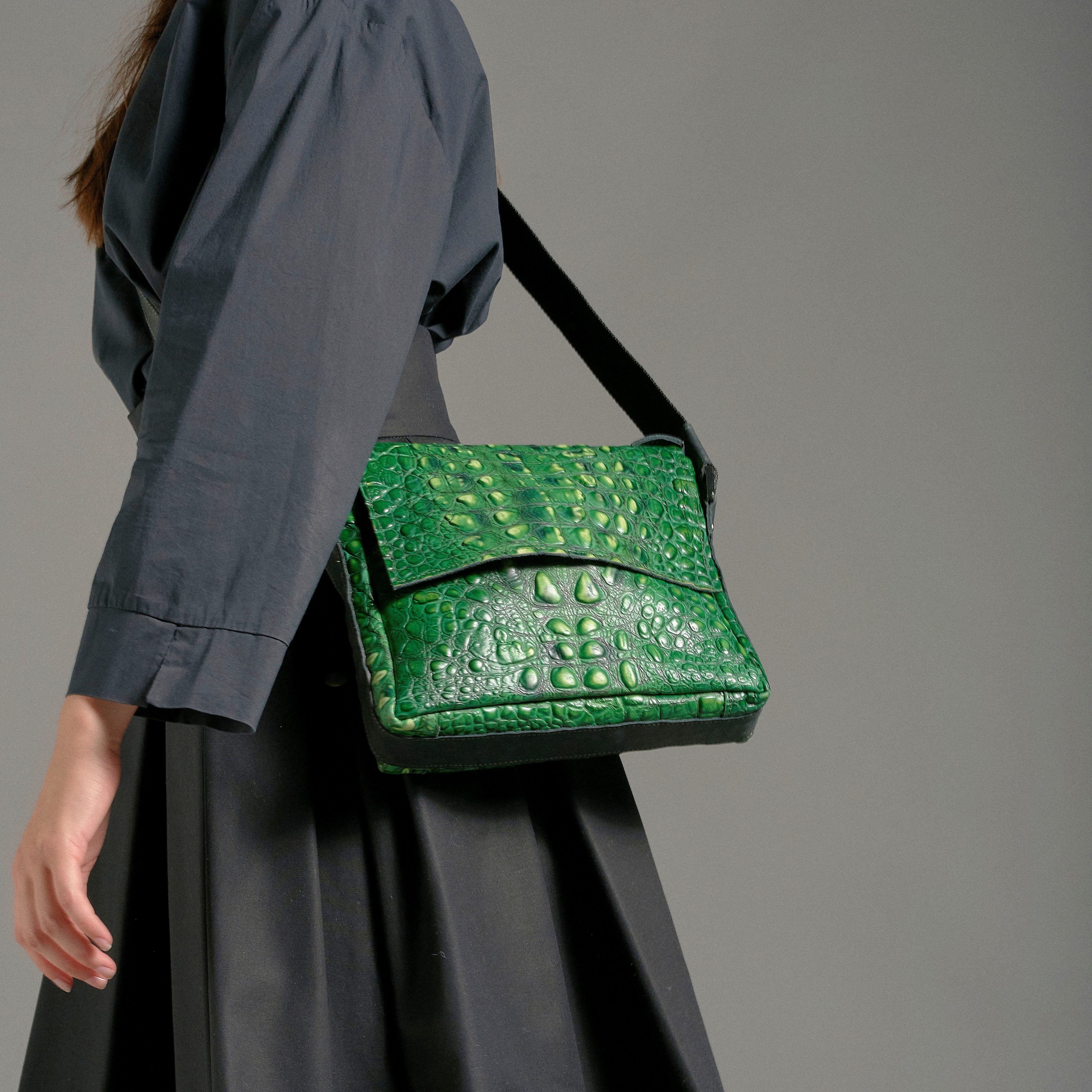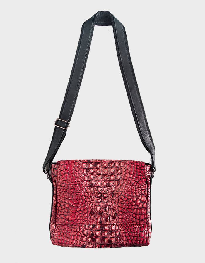 Esta bolsa em couro croco upcycling tem o tamanho perfeito para o dia-a-dia - cabem os óculos, a carteira, a maquiagem, o livro de viagens e o telefone. Pode ser usado ao ombro ou de trespasse e pode escolher entre vermelho, azul escuro, verde e taupe.