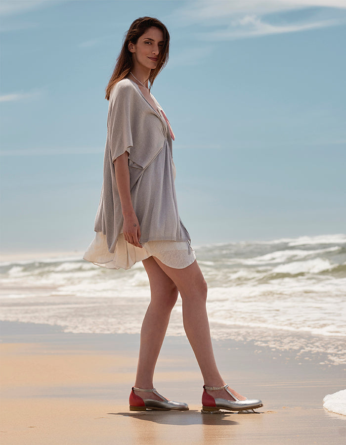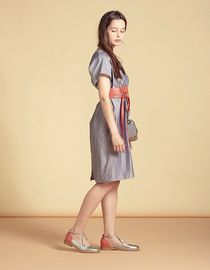 Motherpearl é um sapato de senhora com biqueira redonda, feito com bioleather português. São inspirados nas cores da madrepérola do interior das conchas nas cores salmão e prata - as 2 tiras e a tira no tornozelo conferem a este sapato um visual sofisticado e ao mesmo tempo infantil. Este sapato é extremamente macio, tem um calçar excelente, com o calcanhar almofadado na palmilha que lhe confere um andar muito confortável. Também a utilização do forro de bioleather natural, a sola de borracha natural e a tira para ajustar ao tornozelo e ao pé é perfeita para dias felizes a caminhar ou a ficar no conforto do lar. Usamos bioleather salmão e prateado - um material verde que não tem nenhum metal pesado em sua composição e pode ser enterrado e dissolvido em 2 a 3 semanas, servindo como um composto natural.