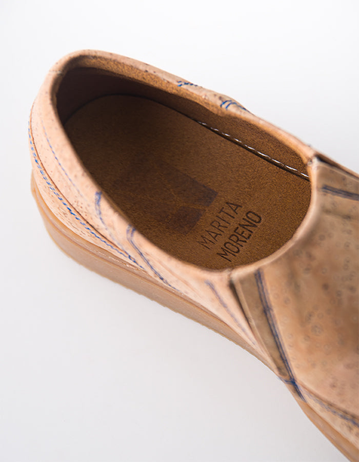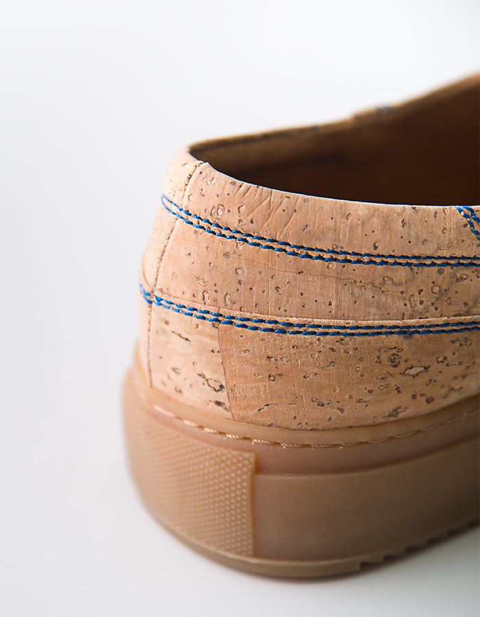No Miramar Natural Cork slip-on, utilizamos cortiça natural portuguesa, criando um slip-on natural na cor da pele com pontos de linha contrastantes.